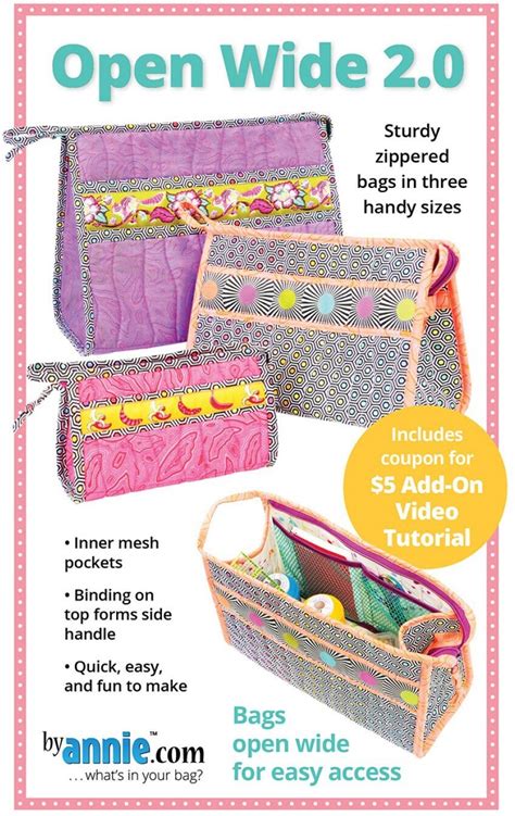 By Annie Open Wide 2.0 Pattern, Handy Zippered Bags Pattern, Modern Bag Pattern, Modern Quilting Pattern, PBA 2462