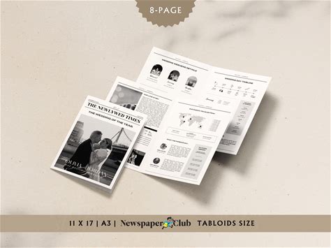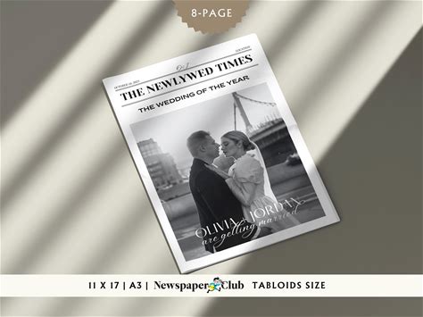 8-Page Wedding Newspaper, Canva Newspaper Wedding Program, Editable Wedding Day Newspaper Tabloid Template, Newspaper Club Template, 054
