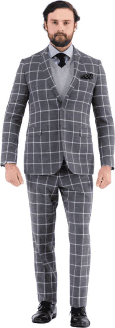 Men's Vested Gangster Plaid Pattern 1920'S Plaid Suit In Grey, Polyester Rayon, Slim Fit, Ferrecci, Imported