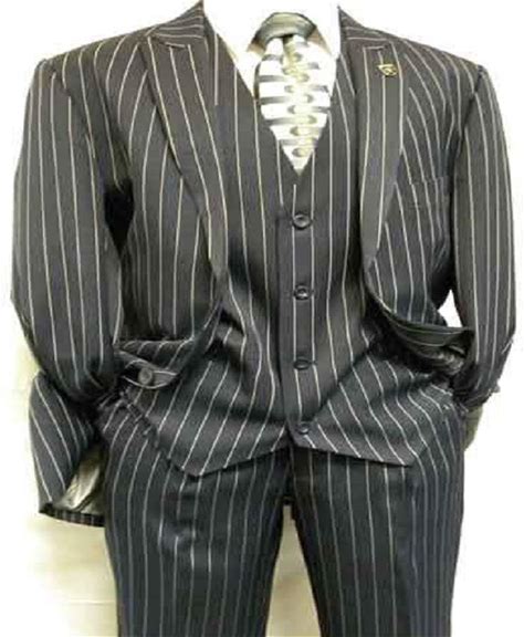 Men's 1920'S Gangster Bold Pinstripe Stripe Mars Dark Blue Fashion Vested Suit Pleated Pant 58R