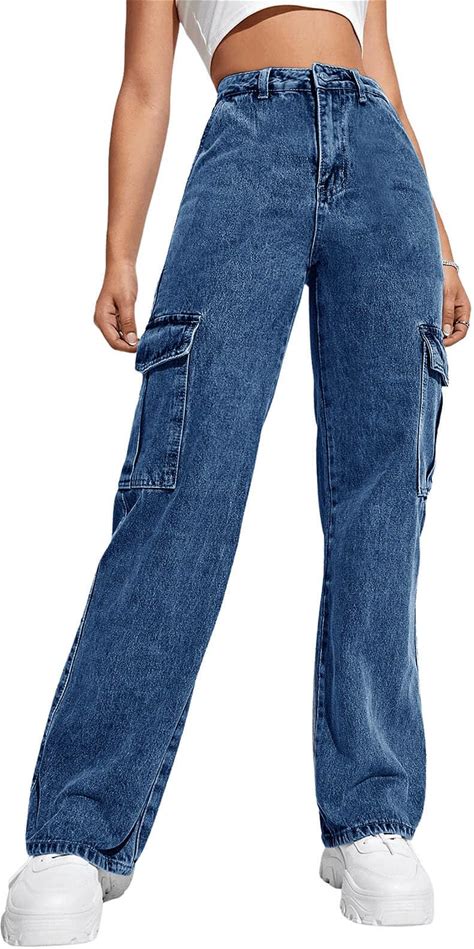 Teen Girls Cargo Jeans Baggy Wide Leg Floor Denim Pants High Waist Casual Streetwear Y2k Trousers With Pockets Straight
