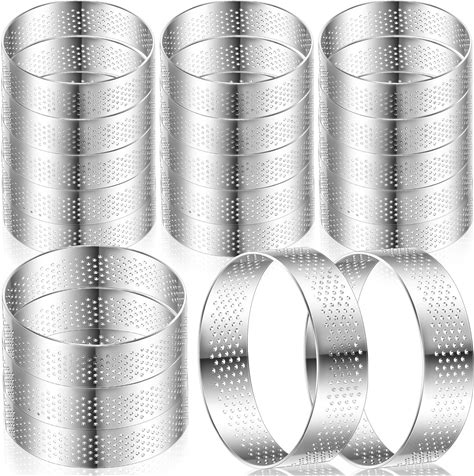 Mumufy 20 Pcs Perforated Tart Rings Round Stainless Steel Tart Rings For Baking Nonstick Metal Round Cake Ring For Pastry French Dessert Mousse Food