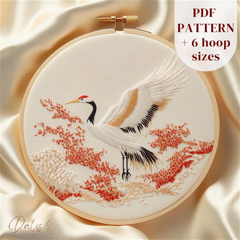 Japanese Crane Bird Embroidery Design, Animal Hand Embroidery Pattern, Digital Embroidery PDF Printable, Advanced Level Stitching Pattern