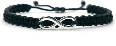 Infinity Bracelet, Braided Black String Wristband, Silver Tone Infinity Charm Braided Bracelet For Man & Woman